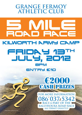Only 6 days to our annual road race in Kilworth Camp, registration will take in The Glocca Maura from 6.30 on friday evening. Hope to see you all there, also Paul Howard (Physio) will be also at the Glocca if you want to ask a question or just need a quick rub to help loosen out the legs before the race.